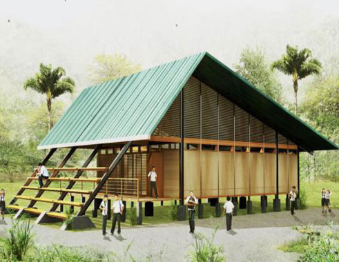 La muestra “Our Amazon Frontline” del Perú, centrada en la Amazonía que propone escuelas prefabricadas para la selva peruana.
