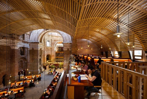 El proyecto pretende además establecer un diálogo entre algunos elementos de arquitectura moderna y los grandes temas del pasado mediante citas y alusiones diversas, así como dar cuenta de otras aportaciones del arte moderno al margen de la arquitectura y que superan el ámbito propiamente lingüístico pero no el conceptual. Vale ésto último sobre todo para la implantación del mobiliario de la Biblioteca situado a modo de “instalación” en el espacio reconstruido.