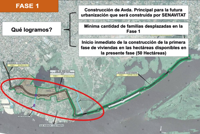 Primeramente, está el componente vial, que consiste en la construcción de una avenida de 9 km, que va desde la avenida Cacique Lambaré hasta Colón. «Son 9 km que se van a unir a lo que está a punto de terminarse: la avenida Costanera Norte, que comienza detrás del Palacio de López y llega ahora hasta General Santos pero ya continúa otros 3 km», aclaró el padre Velasco.