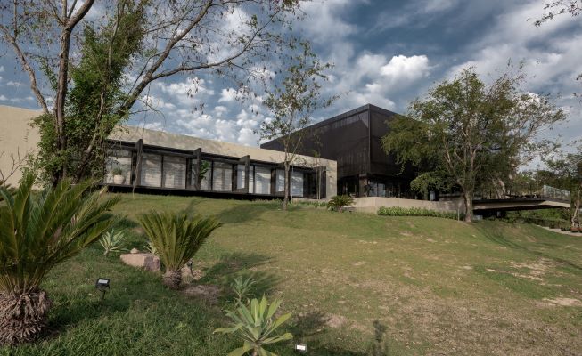 Los volúmenes que se desprenden del eje albergan las áreas privadas donde se descansa, se reflexiona. En el centro de la casa, bajo las ramas que se extienden desde ese gran árbol se comparte en áreas sociales a la sombra de una catenaria.