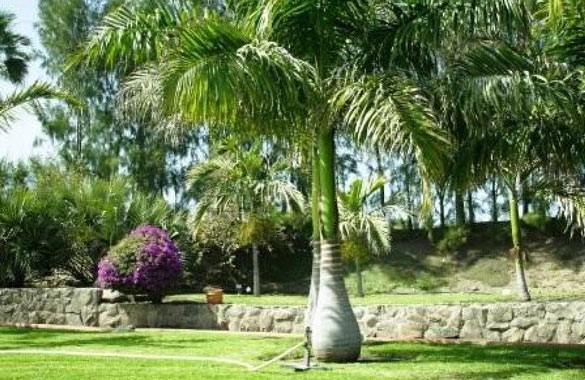 La palmera real. Su tronco se asemeja a un mate en su parte inferior. Mi amigo Juan R. había plantado algunas en su jardín hacía años. Crecieron, al principio lentamente, y cuando se dio cuenta, ya eran columnatas preciosas.
