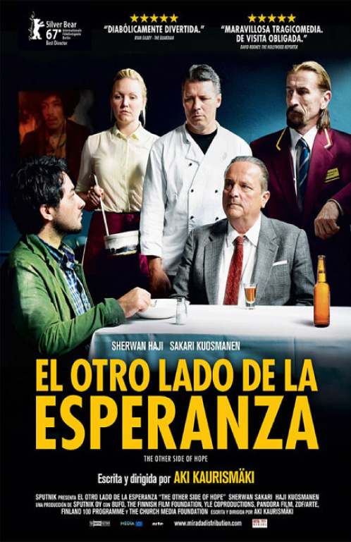 El filme de Aki Kaurismäki, que entrelaza la comedia y el drama, se hizo célebre contando historias llenas de pesar y angustia, pero también llenas de humanidad y recóndito humor. Sus temas recurrentes son la falta de trabajo y la marginación social. El encuadre cinematográfico, el color, y la música inusuales son sus características esenciales. El otro lado de la esperanza” tiene todo eso, por lo que es un plato fuerte para los admiradores del más prestigioso director de cine de Finlandia.