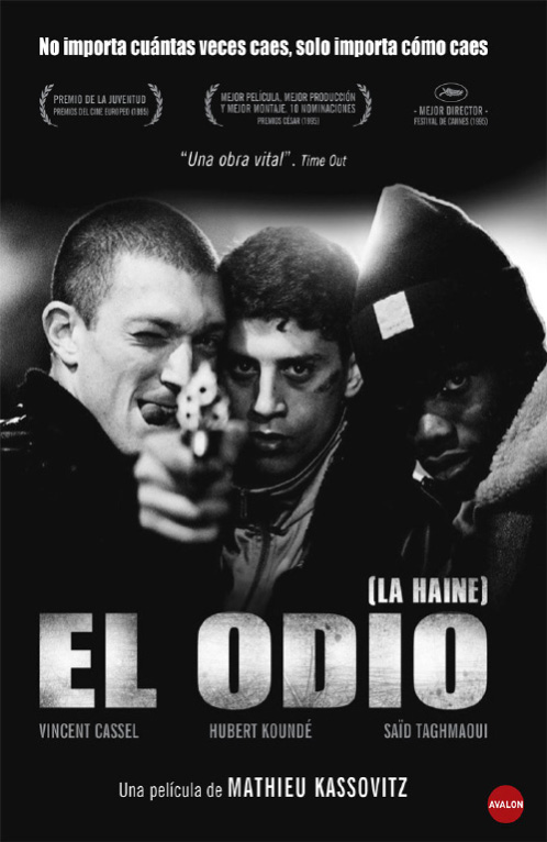Aunque ya tiene unos buenos años de realización, El odio en este momento es más actual que nunca, un problema urbano que se vive constantemente y al parecer no tiene solución: la convivencia de etnias diferentes y sus enfrentamientos en las grandes urbes. El odio es un drama potente y cuestionador, realizado en blanco y negro para acentuar su intemporalidad y la violencia de las acciones humanas descontroladas y desoladoras. Indudablemente hay que verla con una actitud comprensiva y crítica.