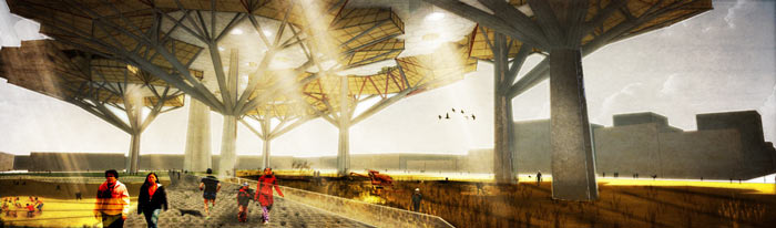 “Durante el proceso de diseño, nos interesó mucho cómo los elementos naturales se podían integrar en cualquier parte de la ciudad de manera armoniosa. Por esta razón escogimos el concepto formal de un árbol que también intenta integrarse a cualquier parte de la ciudad. A su vez, esto nos llevó a pensar en un modo en que se pudieran habitar estas zonas y a su vez ser sostenibles en todos los aspectos”.
