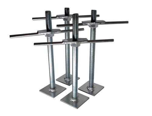 Las patas niveladoras o regulables para andamios son componentes esenciales en la construcción y el mantenimiento de estructuras. Su función principal es ajustar la altura y nivelar el andamio, permitiendo que la base se apoye de manera firme y segura incluso en terrenos irregulares, escaleras, banquetas o superficies desniveladas.