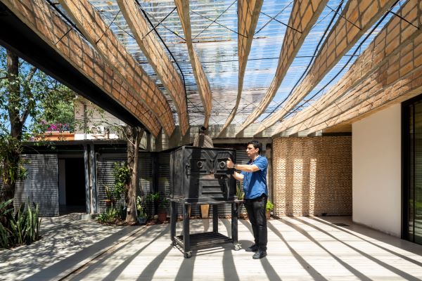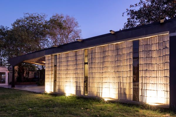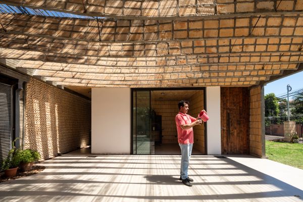 Se proyecta una losa hibrida cerámica de ladrillos armados con capa de compresión de hormigón para reducir el consumo de cemento en relación con las losas tradicionales. Se proyecta una pérgola que hace alusión al pabellón nórdico, con el desafío adicional de hacerlo en ladrillos armados.
