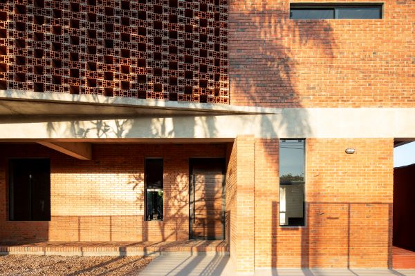 El clima de Paraguay obliga a pensar primero en estrategias pasivas: ventilación cruzada, luz natural filtrada, sombreamiento, patios, galerías y terrazas. Al mismo tiempo, la cultura del barrio —con la vida social proyectada hacia la vereda— inspiró una relación más abierta con el espacio público, privilegiando rejas, balcones y planos tamizados en lugar de murallas ciegas. Así, la reutilización de lo existente no fue solo una condición económica, sino una postura conceptual: trabajar con lo que había, actualizarlo y hacerlo dialogar con el contexto. La obra reivindica el ladrillo rojo cerámico por su nobleza, durabilidad y reconocibilidad urbana, y sintetiza los principios del estudio: honestidad material, sostenibilidad contextual y diálogo urbano.