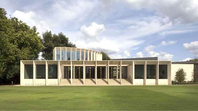 El edificio de influencia clásica alberga una sala de conferencias, salas de seminarios, estudio de danza, vestíbulo y área de bar. El intrincado diseño y la construcción compleja combinaron la artesanía tradicional y las técnicas de construcción contemporáneas, mezclando los pisos y techos de roble expuestos internamente con la caliza Clipsham y un acristalamiento sustancial en su fachada lineal.