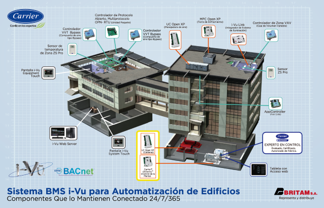 El Sistema BMS I-Vu ® para automatización de edificios (BMS) Building Management System por sus siglas en idioma inglés trae el panorama general de su edificio a un primer plano con una vista de 360˚ de las operaciones completas del inmueble.